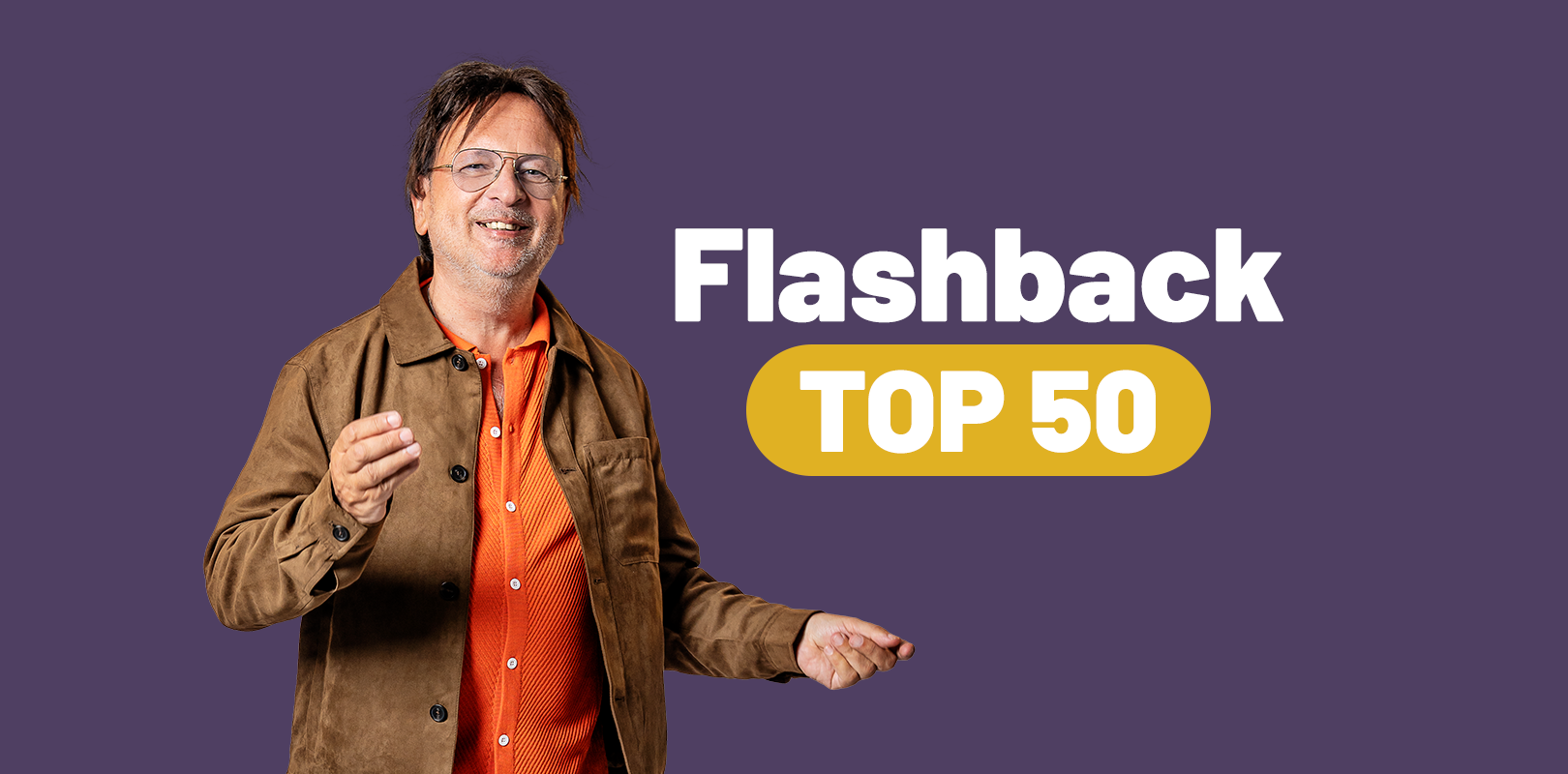 Met de Flashback Top 50 duik je in de mooiste herinneringen! Nostalgie Plus en Serge Hadermann nemen je mee op een muzikale reis. Herbeleef de mooiste momenten en geniet van de grootste hits van vroeger.